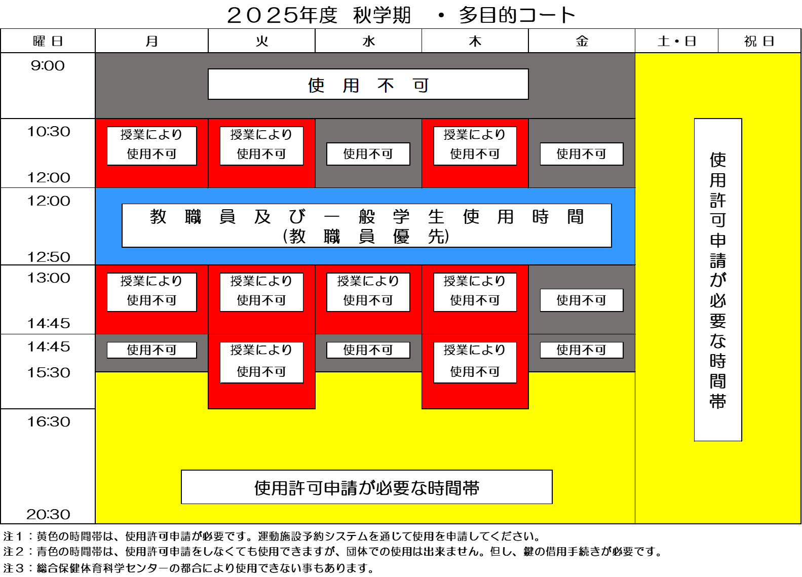 (注意1)体育会運動部の定期練習については,別途,事務局課外活動係によって調整会議が行われます.