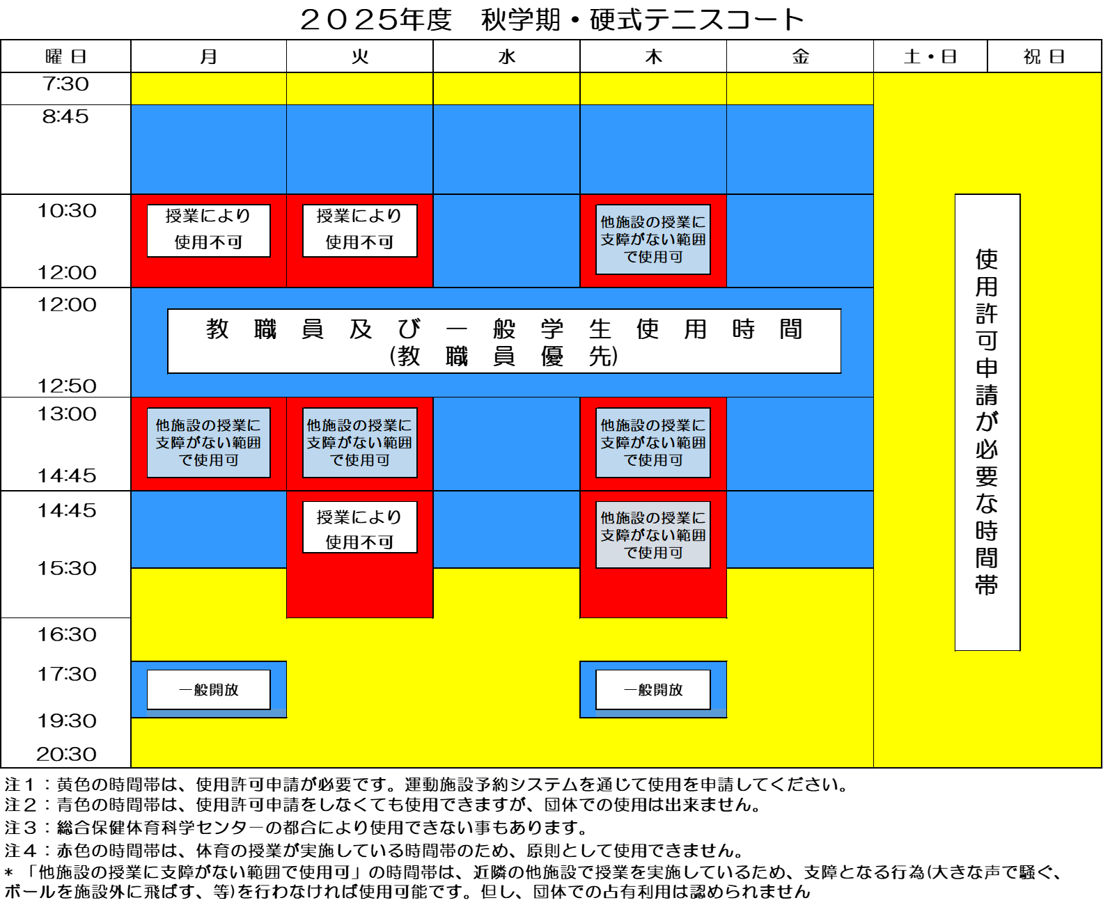 ・ 月~金曜日(祝日を除く):授業,体育会運動部の練習が行われていない時間帯