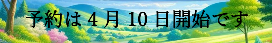 予約は先着順となります。なるべく早く予約をしてください。日程後半は予約が取れなかったり、混雑したりすることが予想されます。
