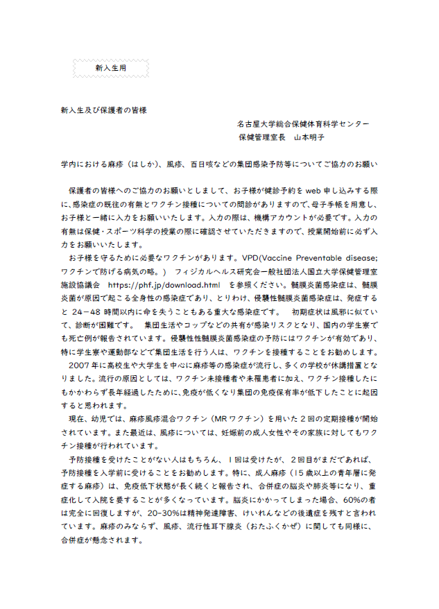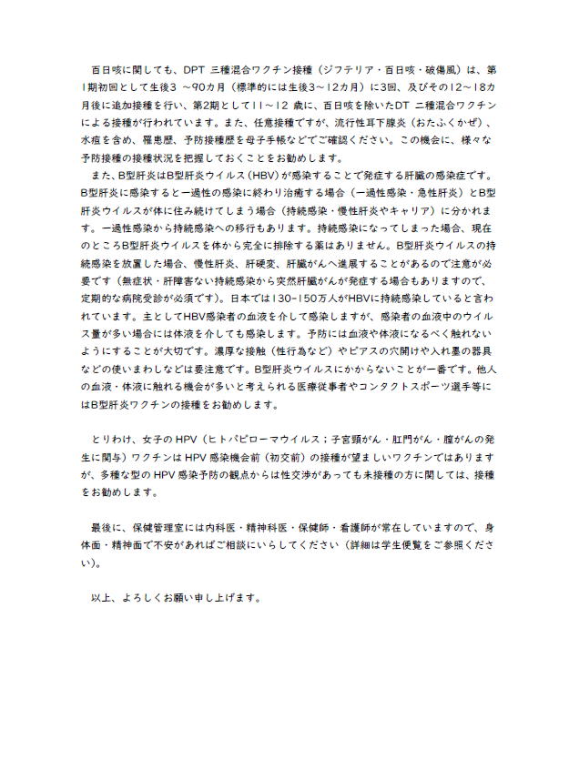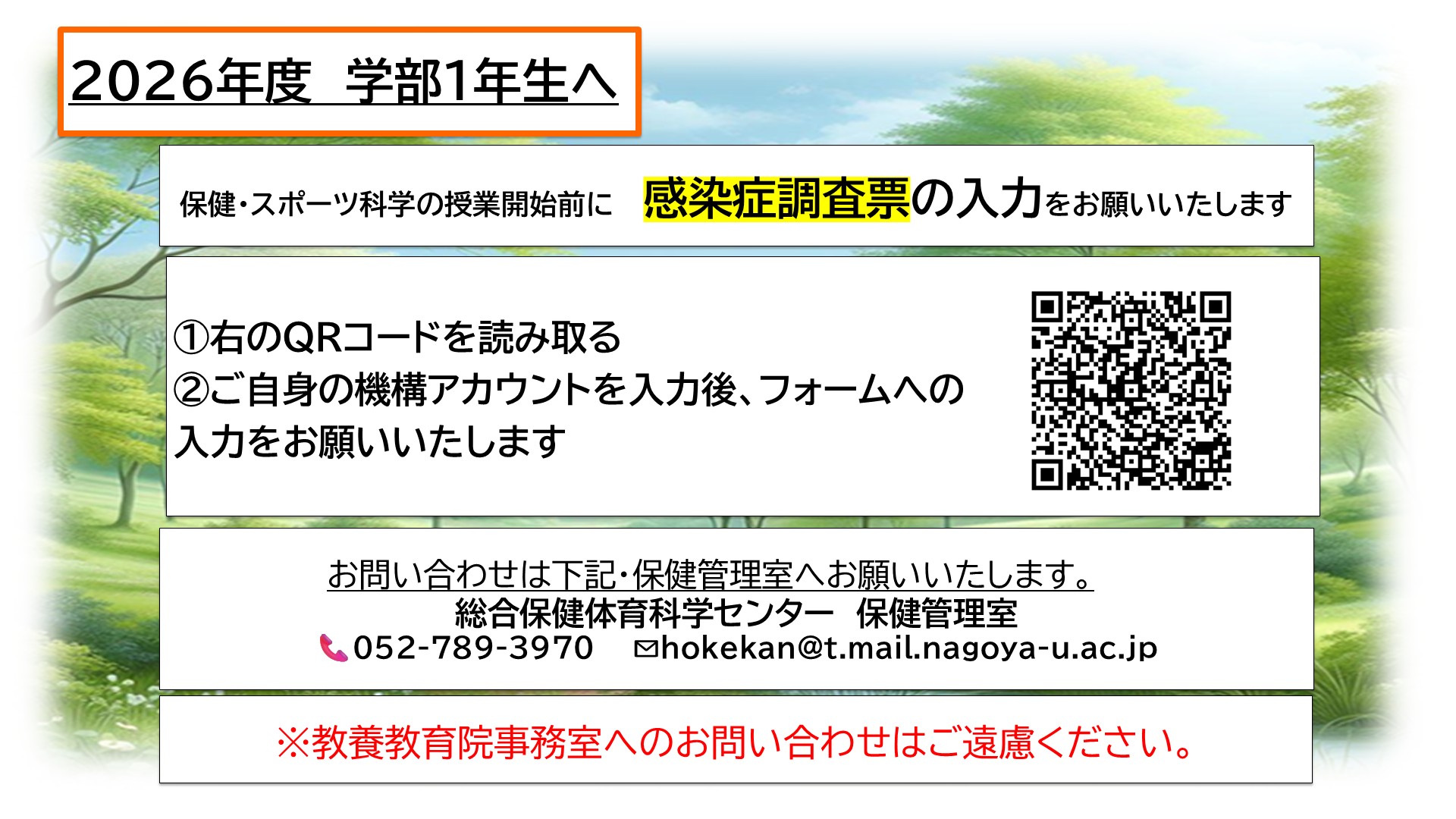 HOME > お知らせ > 学生さんへ > 2026年度 学部1年生 感染症調査票について